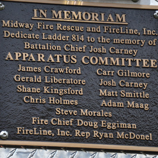 Ladder814 is dedicated to the Love and Memory Of Late Battalion Chief Josh Carney. The ladder was placed into service at 1215 Hours today to serve our citizens and our community.